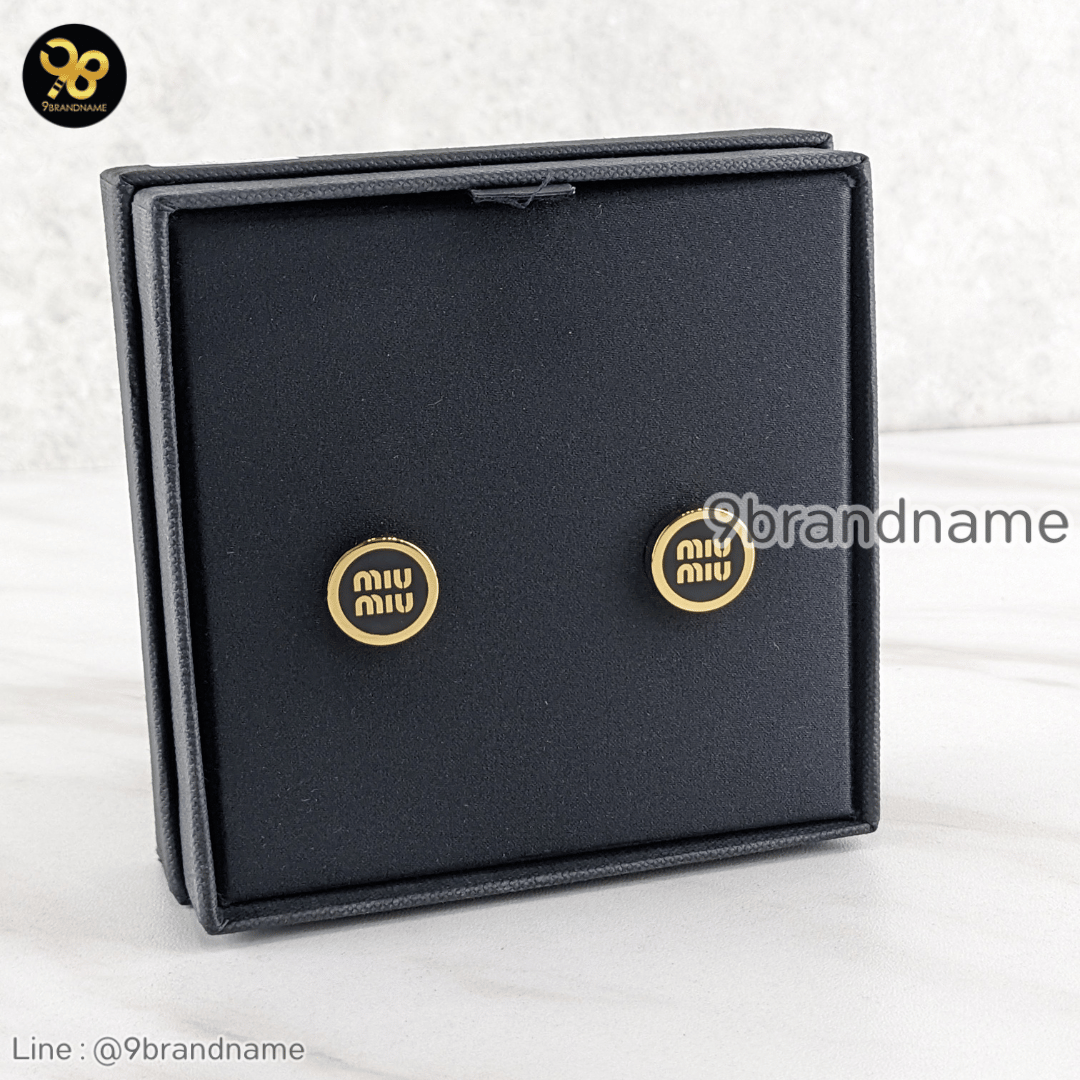 Unused Miu Miu Enameled Metal Earrings Black GHW