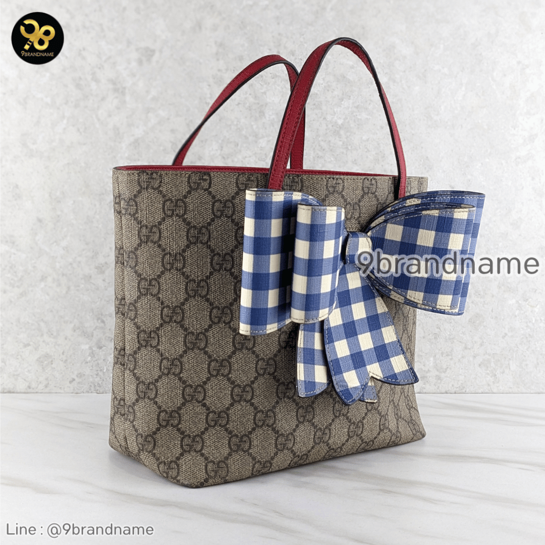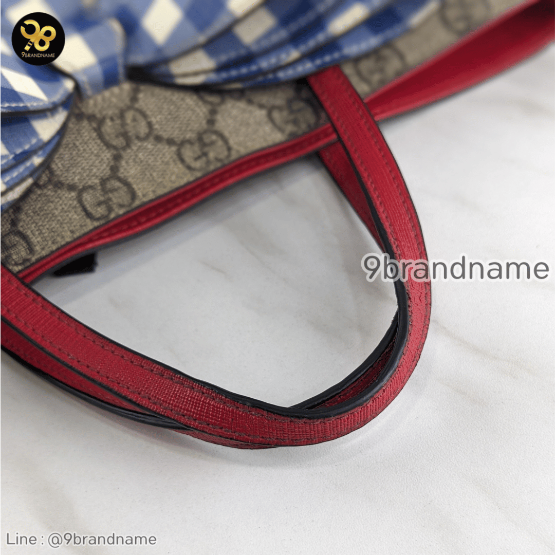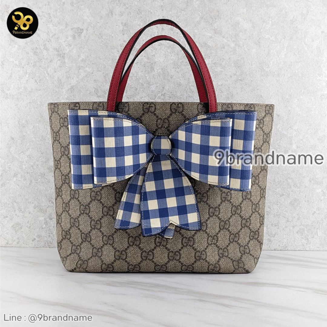 Gucci Kid Blue Gingham Bow Tote Canvas