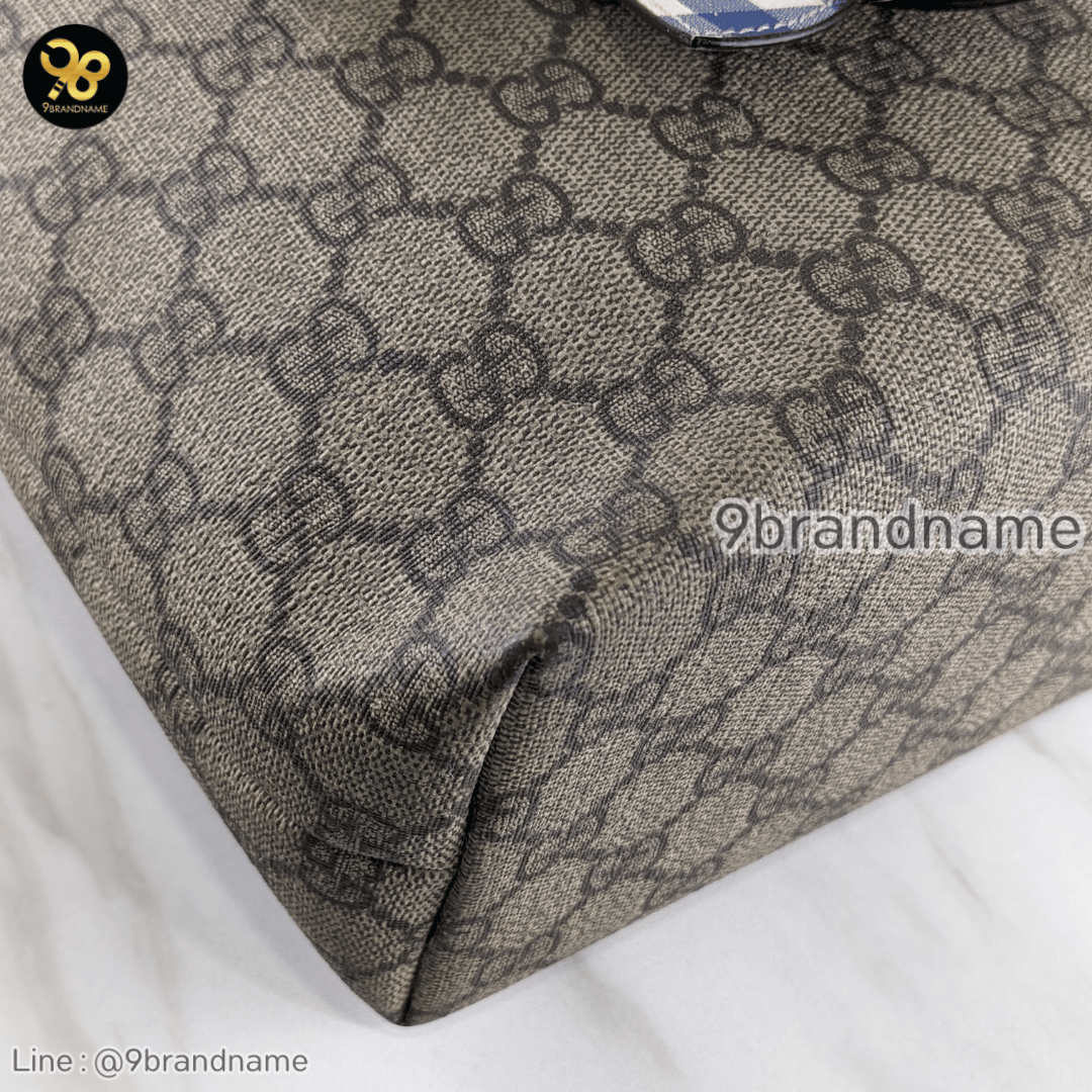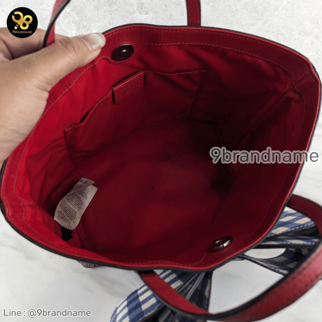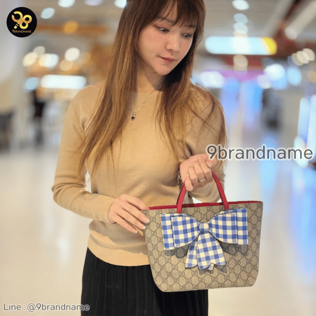 Gucci Kid Blue Gingham Bow Tote Canvas