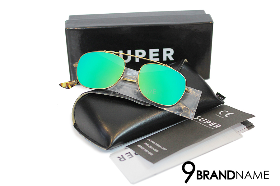 Super Sunglasses Primo Green ขอบทอง เลนส์ปรอตเขียว - Authentic แว่นตา ซุปเปอร์ เลนส์ ปรอท เขียว ทรงสี่เหลี่ยม กรอบ ขาทอง รุ่นนี้น้ำหนักเบา ใส่สบาย มาพร้อม กล่อง ใบ ผ้าเช็ดเลนส์ค่ะ