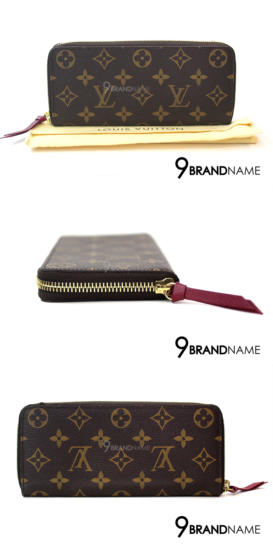 Louis Vuitton Wallet Portefeuille Clemence Monogram Ebene Canvas - Authentic Bag กระเป๋าตังค์ หลุยส์ วิตตอง ใยยาว ซิปปี้ เครม๊องค์ ลายโมโนแกรม หัวซิปหนัง รุ่นนี้ทำพิเศษ ใบเล็กกว่ารุ่นอื่นๆ ของแท้ สภาพดีค่ะ